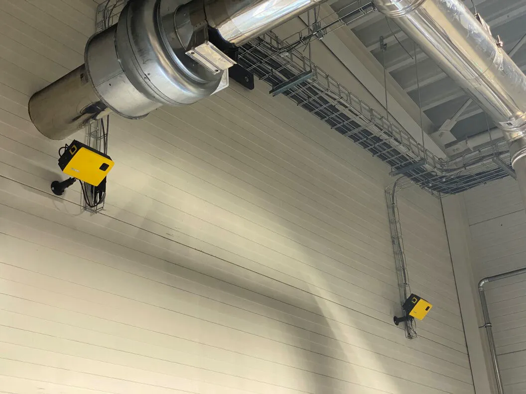 The picture shows an example of the installation of sensors at height, so that they do not occupy the surrounding workplace space